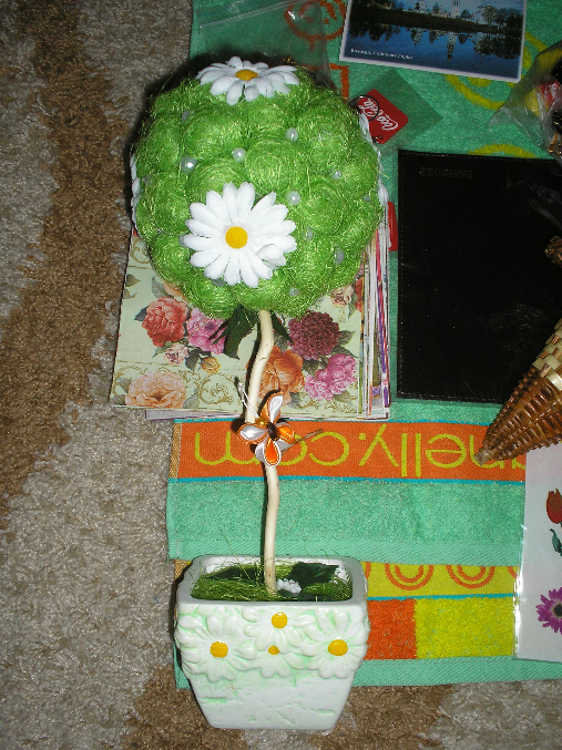 Цветочек,я рада,что смогла тебя порадовать!!!Цветы на листике-это натирки.Кашпо...так ты увлекаешся букетами из конфет,а в нём можно сделать интересную композицию...А обложку я думала,что ты задекупажишь.а там уж сама решай!!!!