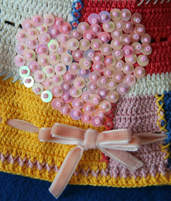 Первая...Веселая и яркая.Много всего наворочено: и бисер с пайтками, и бархатная лента, и стиль пэчворк...Как вам кажется-не перебор?