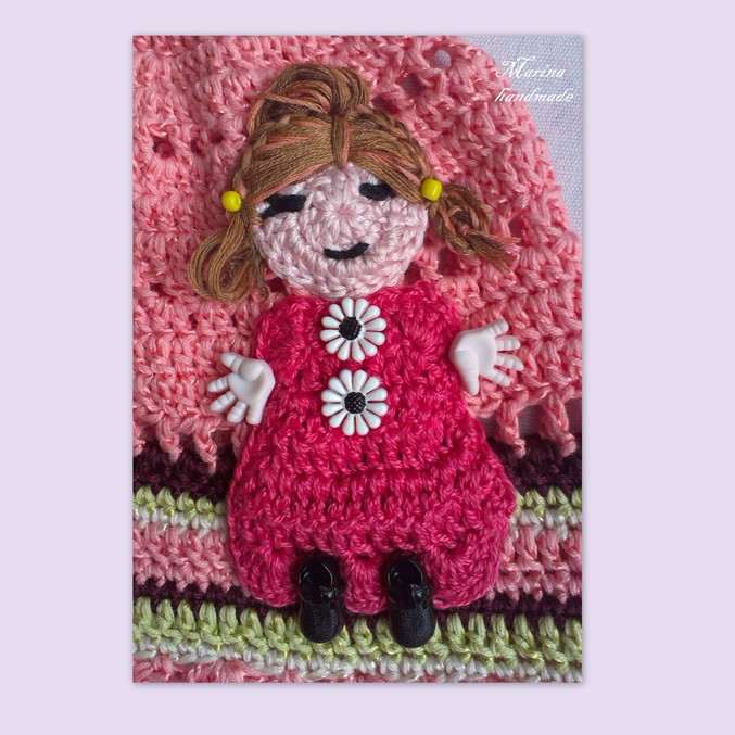Сама куколка на первый взгляд кажется сложной. но вяжется на удивление достаточно быстро. И прелесть в том. что чувствуешь себя ещё и стилистом (парикмахером). С причёской можно навертеть что угодно. и ещё мне подруга привезла целый пакет вот таких ладошек и я попробовала их и сюда применить, туфельки я испробовала на прошлой своей шапочке http://www.babyblog.ru/community/post/rukodelie/1872251