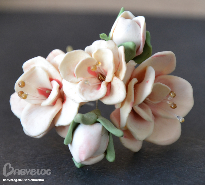 Добралась и до пластики. Давненько собиралась изучить этот материал, благо есть для кого теперь делать всякие штучки. Все же большой плюс иметь дочку и не одну ))) Ну а теперь к делу. Попробовала сделать цветочек, ну так...еще не поняла конечно, какой толщины можно делать, сколько обжигать и какое на ощупь оно должно получиться на выходе. Лепестки можно и тоньше делать, да и все остальное тоже. Ну ничего - все впереди. Цветочки мелкие в диаметре весь букетик 3 см, хотела сделать заколочку дочке, как раз сломалась одна. Еще не понятно, как крепить все эти дела к, например, заколке. Фото так себе, поздно вспомнила, что хотела сфотографировать - уже стемнело.
