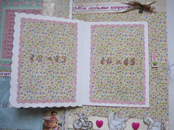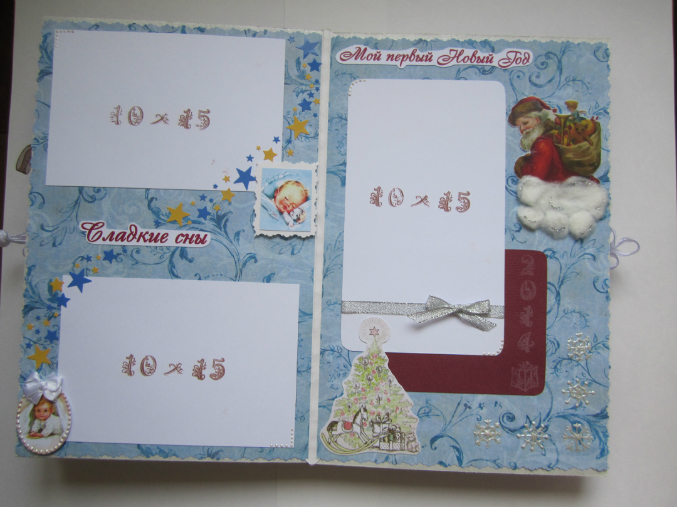 получилось 6 разворотов. Альбом вмещает фотографий: 9х13 - 6 шт., 10х15 - 16 шт., 15х20 - 1 шт.