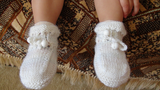 Просто увидела знакомые пинеточки... Я похожие на двух спицах вяжу, очень мне эта моделька нравится - легко и симпатично получается!