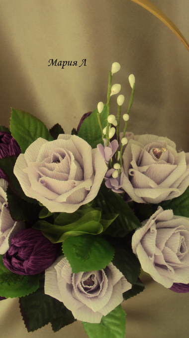 Розы шикарные,браво!!!А во второй корзиночке бледно-сиреневые розочки очень красивые!!!