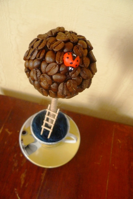 безумно хотела топиарий и теперь он у меня есть,малышок высота около 23 см,диаметр кроны около 8см,он безумно красивый))) уже занял почетное место на полочке