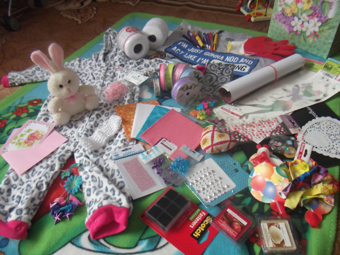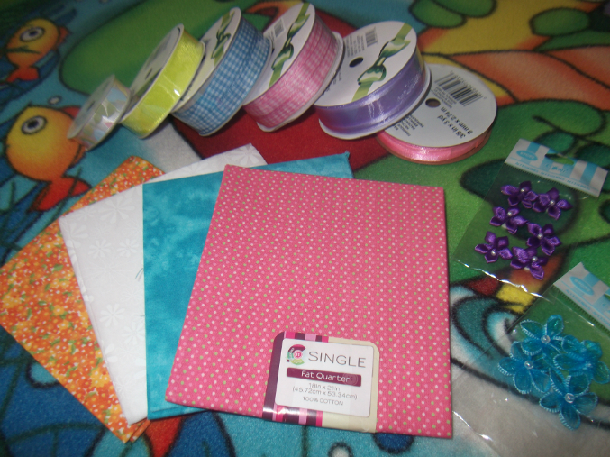 Это всё мне: красивущие ленточки, тканюшки, цветочки на клеевой основе )))