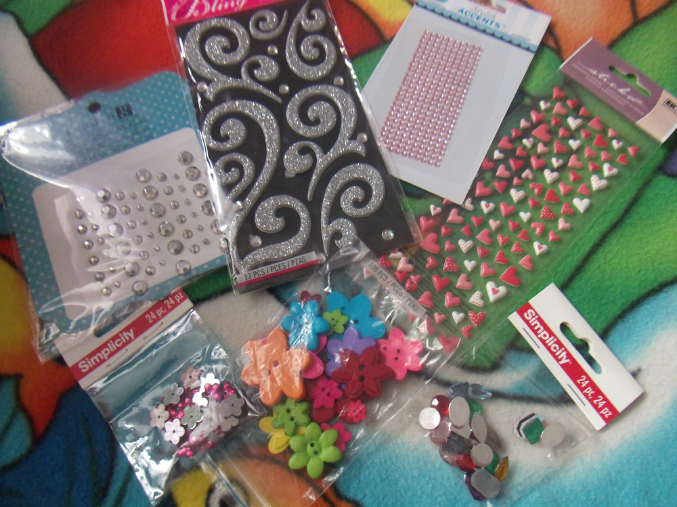 Наклеечки, стразики (тоже клеевые), акриловые штучки разные и пуговки - м-м-ммм, я от них просто в восторге!!!