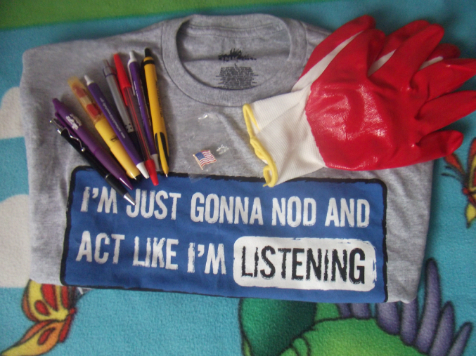 А это всё для нашего папы: футболка, перчатки, значок и ручки! Правда ручки он мне отдал, т.к. он у нас только тонкие признаёт )))