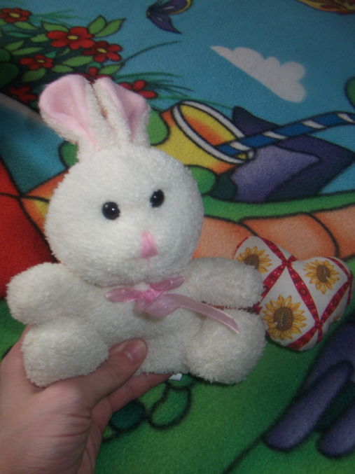 Зайчонок - давно я о таком мечтала, он мягонький, сплюшечный такой ))) Сердечко, хотела себе забрать под иголочки, булавочки, но доча тоже себе пригребла, сказала это "бах" - подушечка на её языке ))) кукол спать теперь укладывает )))