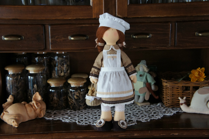 Ульяна, какая ты молодец, что не сдалась и переделала куколку! Образ вышел отличные, не зря трудилась! А от деток можно ожидать всего, что угодно)) Я своим игрушкам рисую глаза и пудрю щечки, когда доча спит! А то ее маленькие ручки так и лезут за кисточкой! Один раз еле поймала, когда она пришла пудрить щечки зайцу своей кисточкой с красной краской!