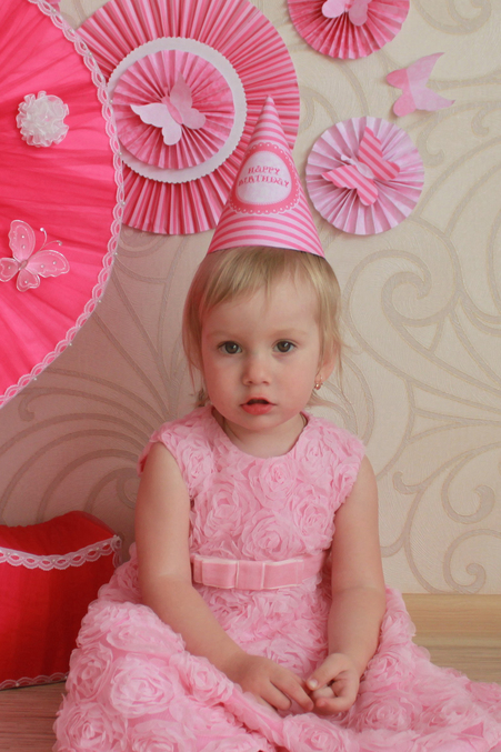 А вот и фоточки на имениннице. Уже больше года я просто мучаюсь с тем, чтобы запечатлеть мое чудо с улыбкой на лице и глядя в камеру, но безуспешно, ладно хоть не удирала от меня