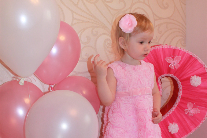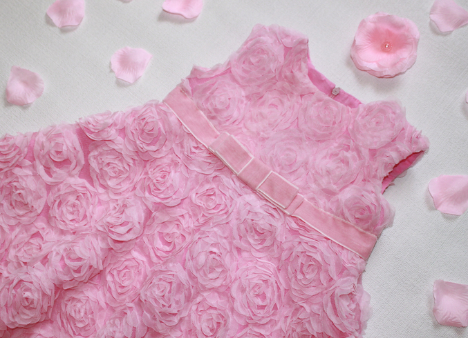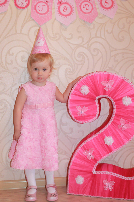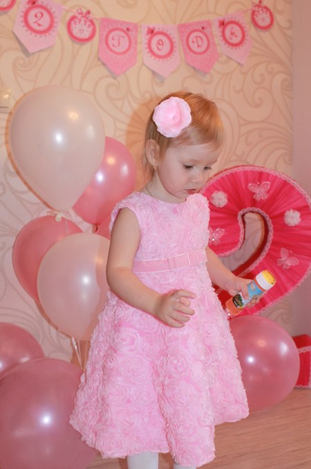 Удивительно, но за 2 года у нас не было ни одного платья розового цвета. Вот и на празднование двухлетия было много вариантов для наряда, но никак не в этом цвете. А потом... пришла посылочка с розочками на сетке и я поняла, что хочу видеть мою девочку именно в розовом платье, именно принцессой.
