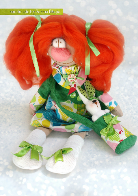 Яркая малышка просто не представляет себе жизни без своего любимого ушастика)))) Даже сумочку для него пошила, чтобы он всегда был рядом)))