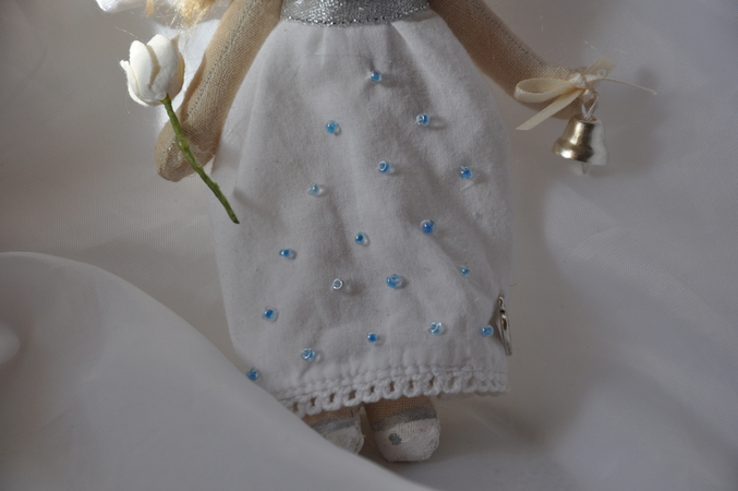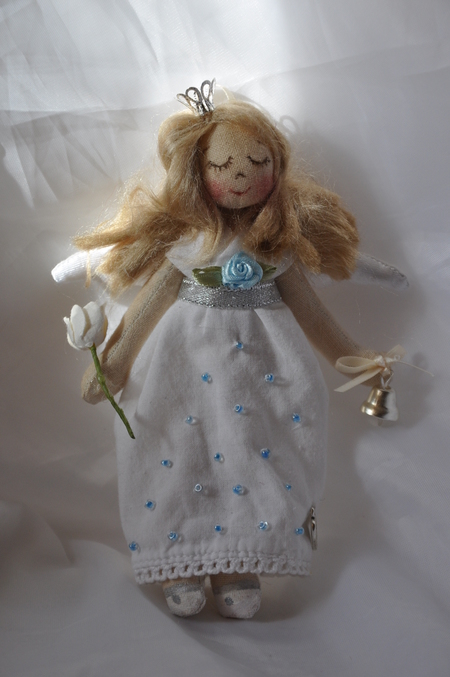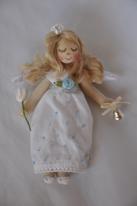 Текстильная кукла ручной работы для души "Милый Ангел". Рост 12-14 см. Материалы: хлопок тонированный, синтепух, шелк, хлопок, бисер, акриловые краски, масляные краски, румяна, фурнитура.
