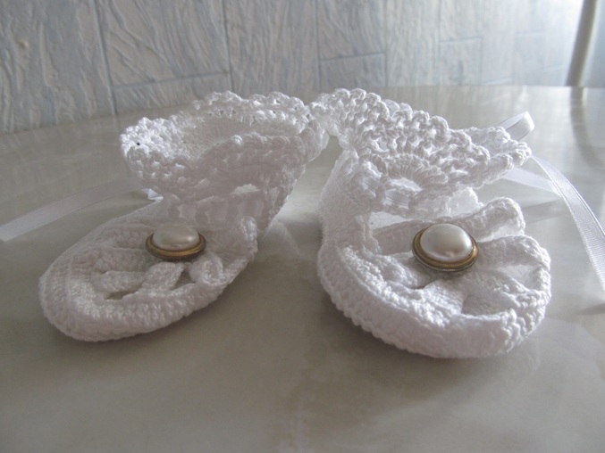 пинетки очень не хотелось вязать, т.к. никогда до этого не пробовала, оказалось очень просто и приятно, так что первый блин совсем не комом, даже моя мама, которая изначально критиковала саму идею такого подарка была от них в восторге и сказала, что они похожи на хрустальные туфельки!