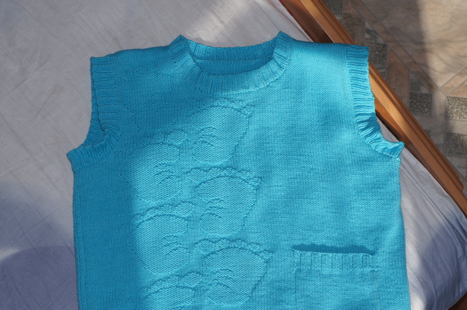 Спасибо большое!!! Нитки ЯрнАрт Джинс, ровненько ложаться и приятные для тела. Оставалось четыре моточка от платья решила связать ещё и безрукавочку доче. Ниток хватило "тютелька в тютельку".