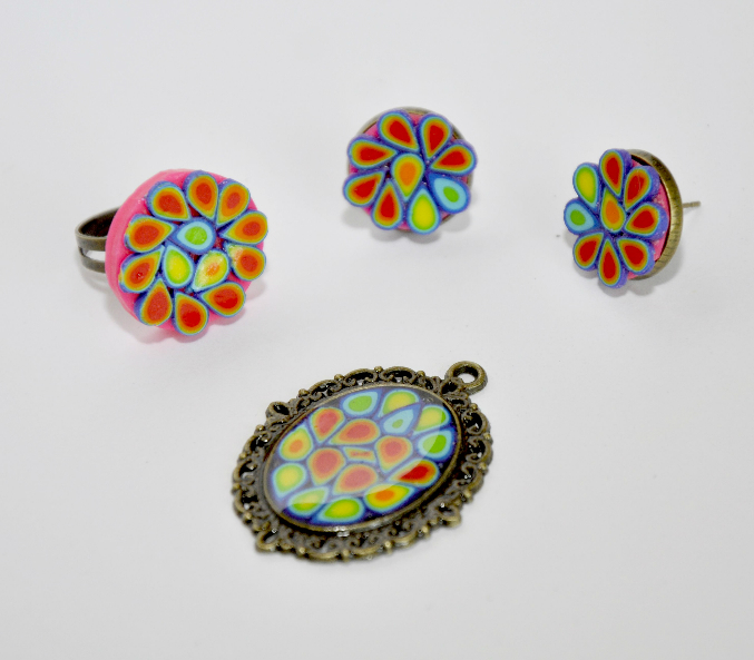 Из нескольких колбасок из цветной полупрозрачной пластики в технике "хризантема" получились вот такие вещички.