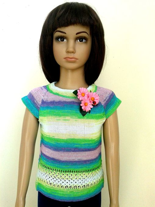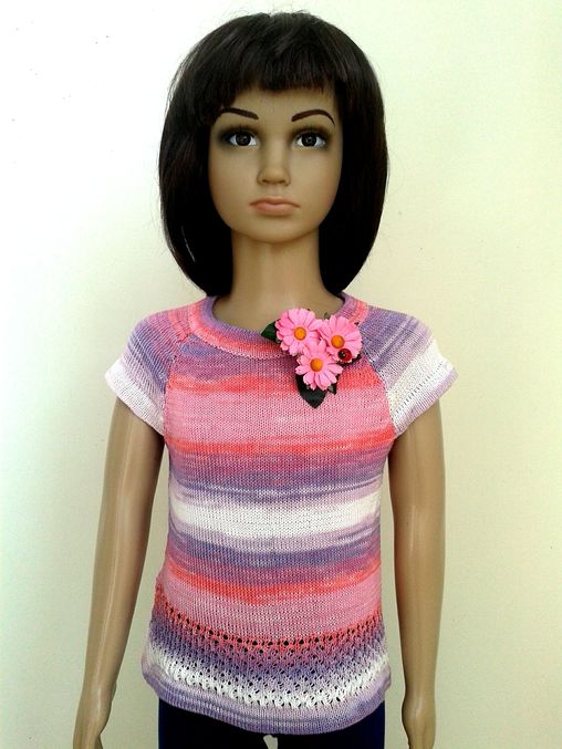 Уже неоднократно убеждалась, что реглан в любых его проявлениях самая удачная одежда для детей. Вот и эти топы связаны на размер 110, а прекрасно можно носить и 100 и 116. Брошь тоже собирала сама)))