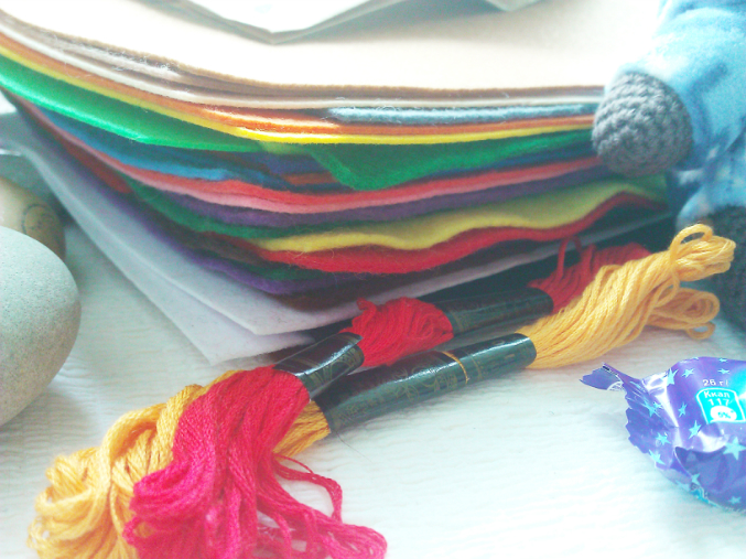 Вот, собственно, сам Мишутка. кстати, дочка выревела его у меня, я изначально хотела его посадить к остальным игрушкам "не для игры", на полочку. Но полились слезы и в итоге легла с ним спать сейчас) А еще мыльце, подставка для фото/бумажек, огромная стопка разного по ощущениям и цветам фетра!!!!!!, чаек, мулине, вкусняшка!