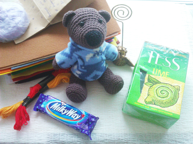 Договорились как-то с @Zausyushka на обменчик)) Я Наде наборчик для создания софтбука, а она мне своего Мишутку и пару листов фетра. А в результате я получила целый пакет с интересностями!!!