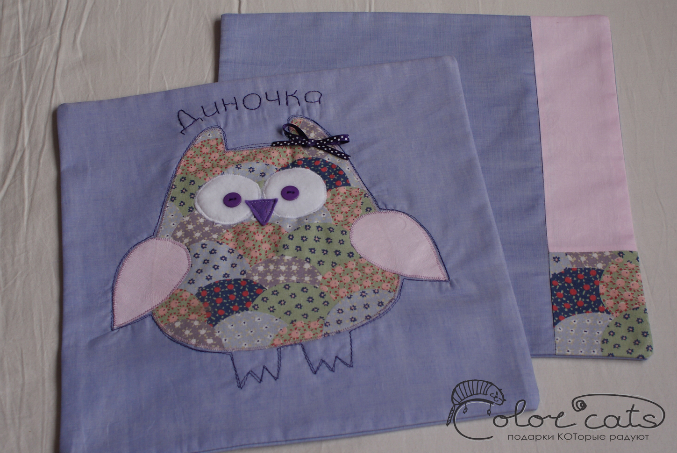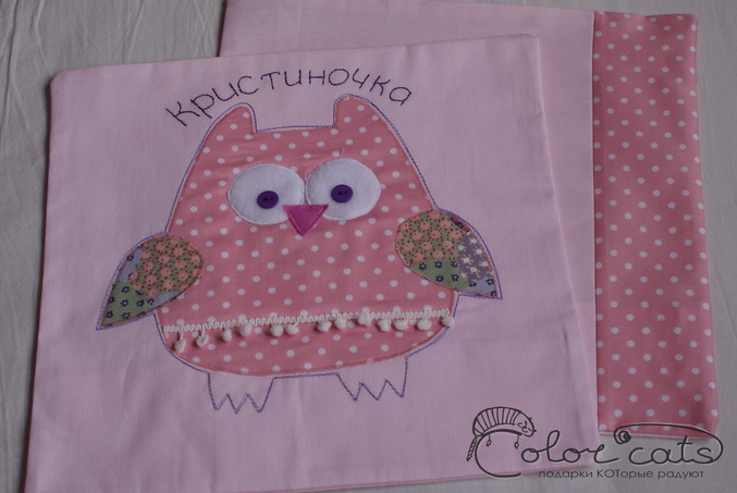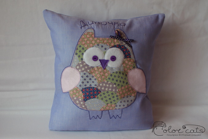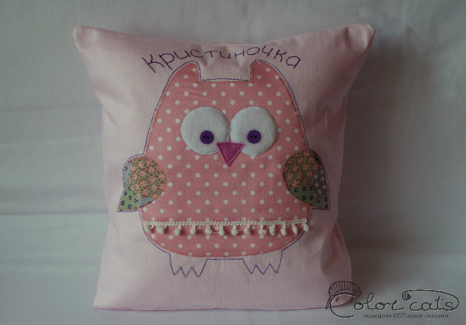 http://www.babyblog.ru/user/lenta/mrs_darg подарит их трем сестричкам - Диночке, Дашеньке и Кристиночке. Подушечек всего 6 - по паре каждой девочке (одна с совушкой и именем хозяюшки, а вторая - в дополение к первой в той цветовой гамме)