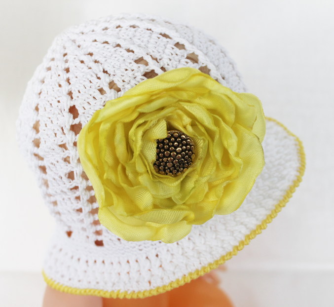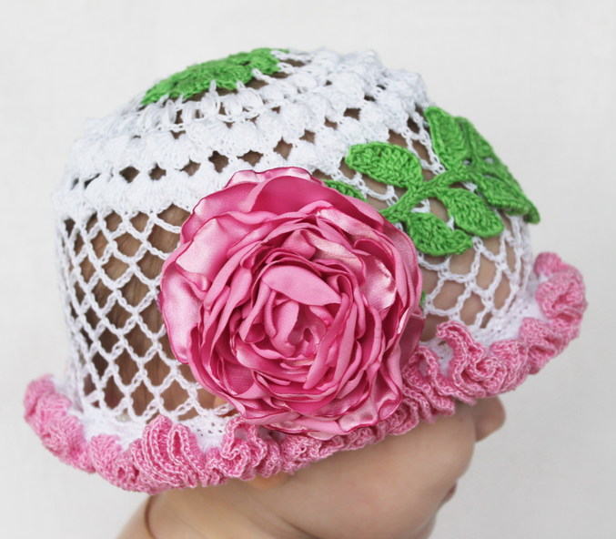 3. Ромашка, рр. 50-52, добавлена атласная салатовая лента по низу для регулировки размера (нет на этом фото), цена 580р.