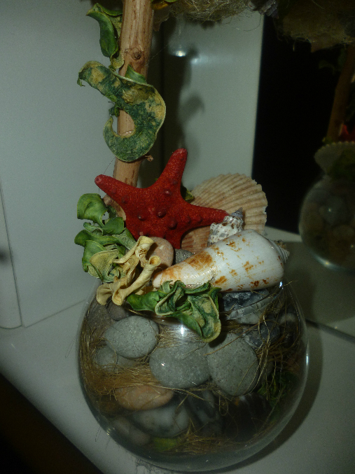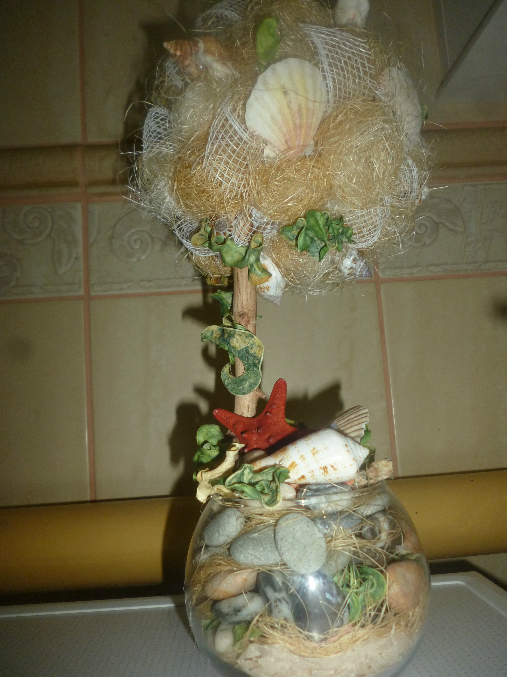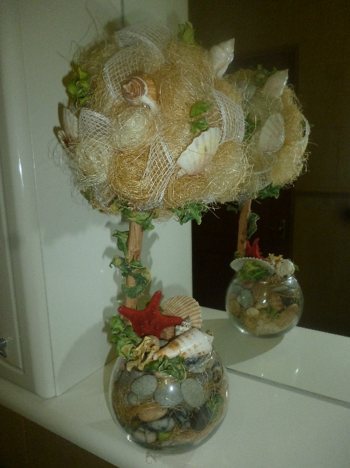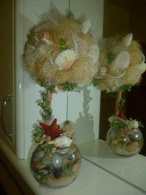 ой ну ты молодец! я сейчас почитала,как это делается,мне фантазии не хватит,да я даже не знаю есть ли у нас в магазинах что-то такое?? зато много ракушек и камешков)))))))))))))))))))))))морское можно было бы сделать, а как называется вот эта основа,которая вместо кроны дерева? и сам шар из чего ты делаешь?