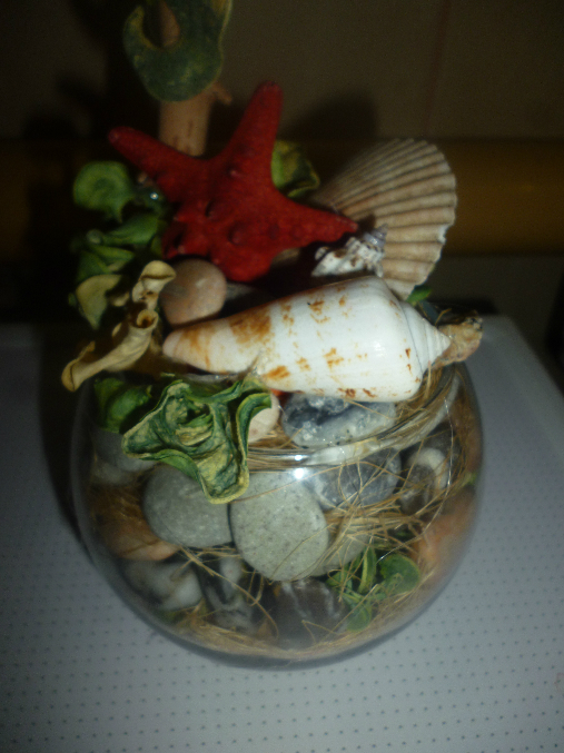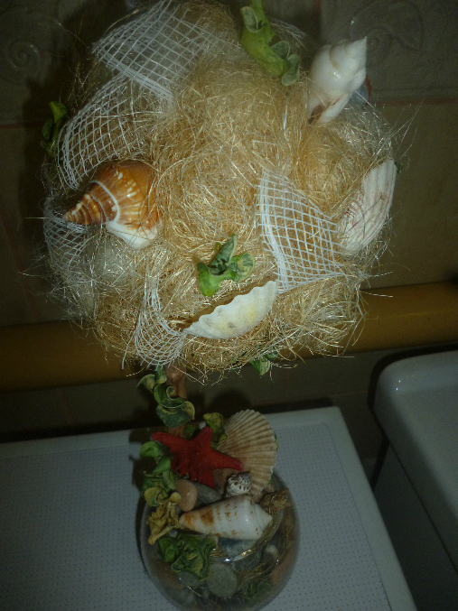 не-не-не, красить ракушки не буду, задумка была именно такая, чтоб как можно более натурально получилось, думаю, зелень вполне освежает вид, у меня просто ванная выдержана в таком цвете, потому хотелось именно так, а вот следующая задумка есть, такм, возможно поярче будет, посмотрим....