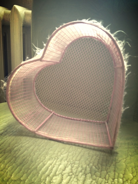 Декор, витражи.Девчонки, помогайте! Завалялась у меня такая штука. Вообще то, это давным-давно мне один возлюбленный дарил и там лежал подарок. Корзинка эта из упругой проволоки, раньше по краю перья розовые пришиты были. Вот теперь хочу дать этой корзинке новую жизнь! Что можно сделать? У меня кроме ленточек, продеть по кругу, ничего в голову не приходит...