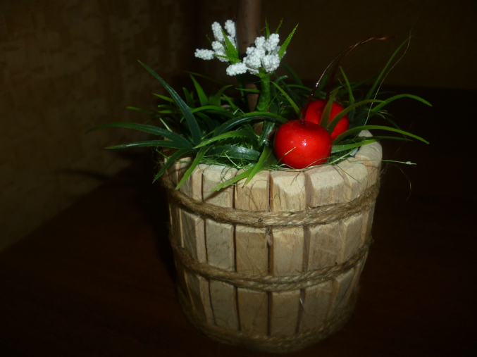 вишни покупала в цветочном магазине, а горшочек "ваяла" сама из прищепок