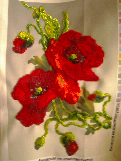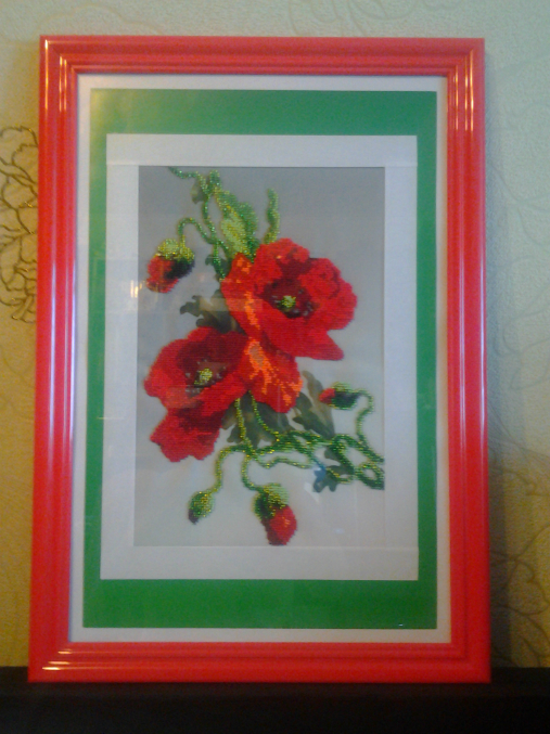 Красивая вышивка!!! А вот рамка слишком яркая, как на мой взгляд, перебивает маки.