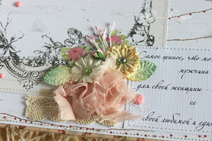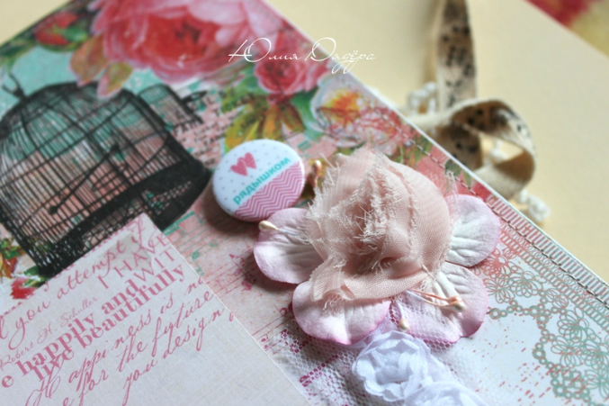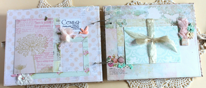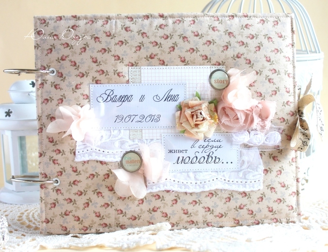 СкрапбукингСделала нежный-нежный альбом для свадьбы, которая состоится летом, на природе, невеста будет в персиковом платье, поэтому именно такую гамму меня попросили взять за основу. Ну и хотелось использовать летние мотивы - цветы, бабочки. птицы. Плюс афоризмы о любви. И получился не очень большой (22 на 27), но емкий (около 40 фото и карман для диска) альбомчик: