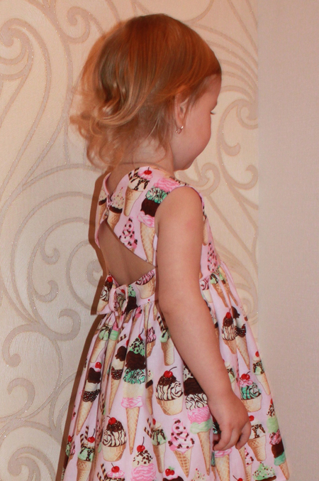 Возможно спинка с таким вырезом не для маленькой девочки, но думаю летом в жару никто об этом и не задумается, а вообще наверное носить будем с болеро.