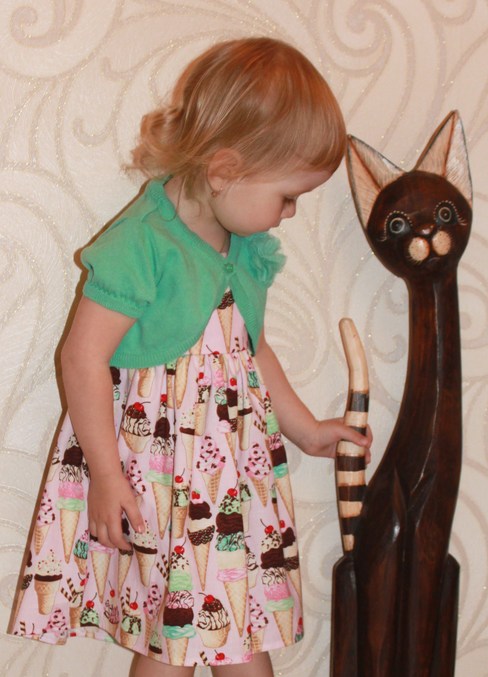 Шитье одежды, выкройки, ремонт одежды, шторы, швейные машины (уже приобретенные)Мое самое любимое платьице! Опять же из американского хлопка. Не могла ничего подходящего найти, чтобы скомбинировать, а потом прикинула с болерошкой и мне так понравилось, что решила так оставить.