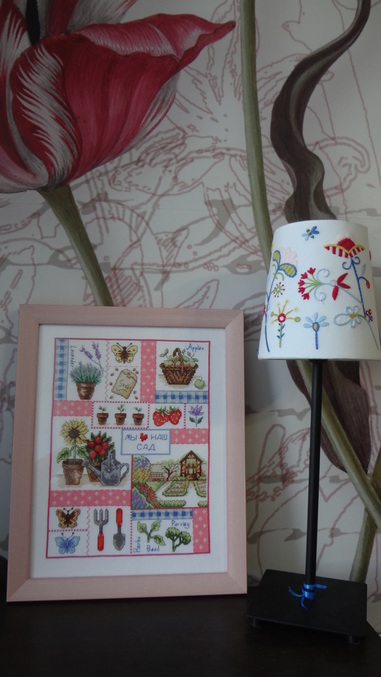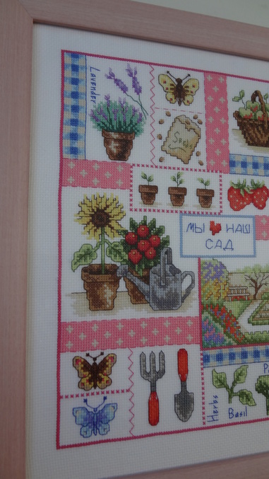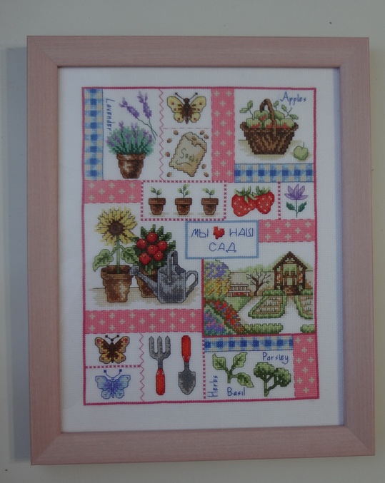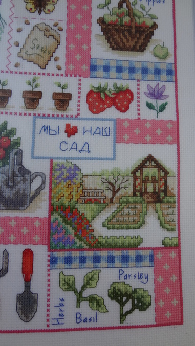 Вот такой сэмплер вышила я для своих свекров...они навсегда уезжают жить в другой город....очень далеко далеко от нас, где у них будет свой огромный дом и самый настоящий сад с персиками, черешней и прочими южными вкусностями. (люди с севера меня поймут