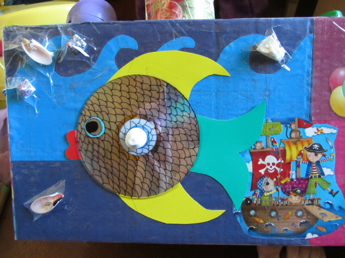 Теперь поближе. Море: крышечка откручивается и рыбку можно взять. Ракушки замотаны скотчем, может не очень красиво - зато безопасно.