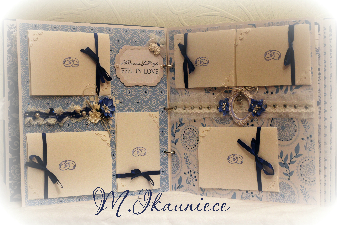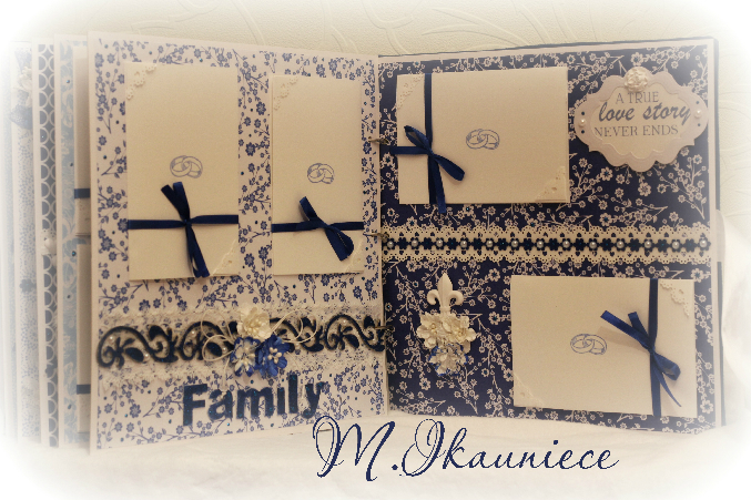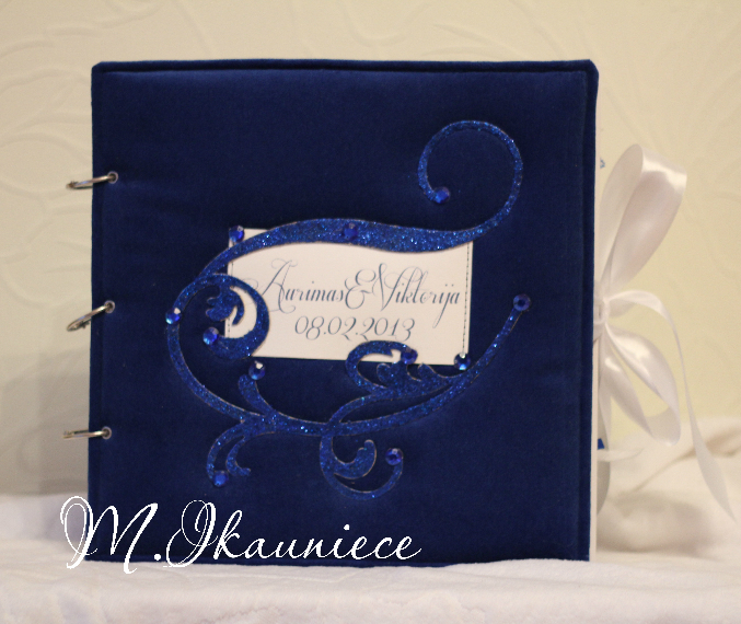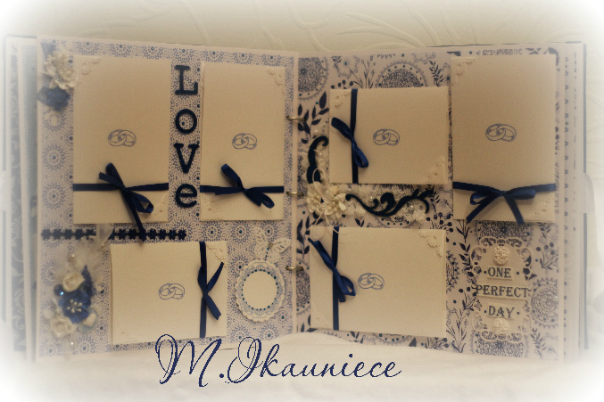 Альбом размером 30*30см.Девушка захотела что бы он был на кольцах,хотя мне кажется лучше смотрелся бы в переплете.Желание заказчицы было чтоб вмещалось много фото,их примерно 70штук.Альбом поехал в Ирландию в семью где муж литовец,а жена латышка.Фото для примера вставляла свои свадебные