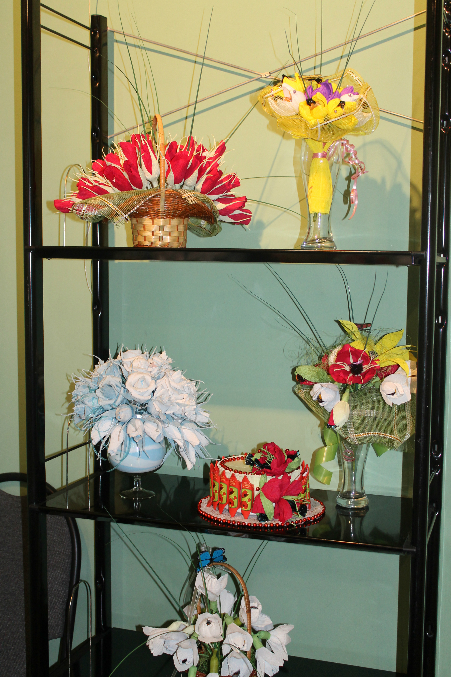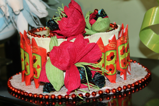 Татьяна Ерохина, моя коллега и подруга, обожаю её! Она была с конфетными букетами, проводила МК по изготовлению конфетных цветов, отбоя от желающих не было!