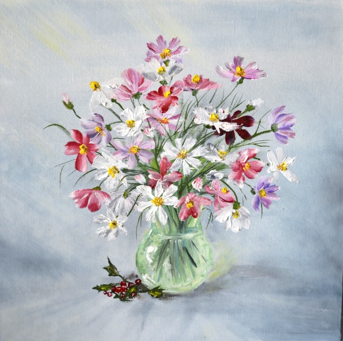 Живопись, точечная росписьНаписала недавно маслом букет Космеи, результатом довольна осталась, но где-то глубоко сидит противное чувство и гложет, своим тоненьким голоском напевая: "так коне-е-ечно, нарисовала называется - взяла чьё-то творение, да перерисовала его - разве это творчество?!"