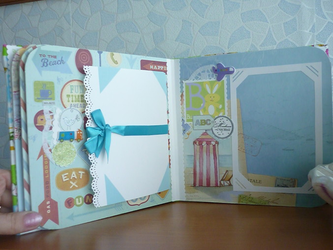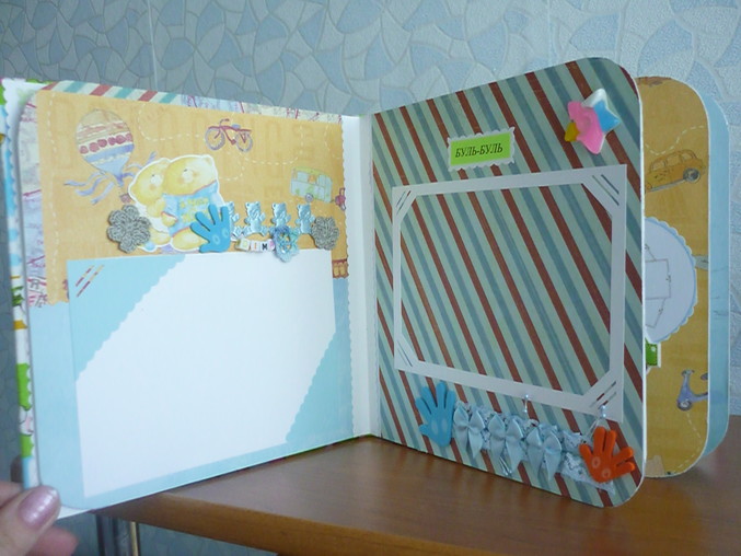 Добрый вечер! Очень красивый альбом, сама хочу для сыночка сделать что-то похожее (сомневаюсь, что получится...таланта маловато). Но я хотела внести малюсенькое замечание, чтобы Вы могли откорректировать перед дарением: "Мой первый День РождениЯ" (иначе это не совсем по-русски получается :))) Надеюсь, не обидела...