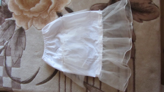 Да Маша, там есть подъюбник ,но он не пышный с двумя рядами воланов сшила за час до утренника на скорую руку.Делала специально не сильно пышным.Нарезала полоски фатина мягкого сложила и прошила по линии сгиба в верху.Нитки после сборки еще не убрала,но теперь времени много ,есть время доработать.