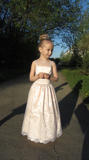 Вот это красота!!!!! Дочка прям настоящая принцесса,умница какая, сама всё придумала!!!! И мама молодец такое чудо сшила)))) Платье шикарное!!!