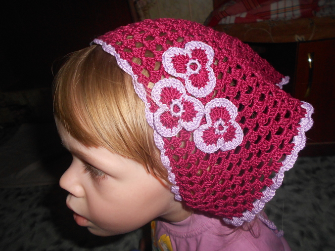 Первый раз вязала такими тонкими ниточками) И вот моя первая косыночка для дочи получилась) Ниточки Пехорка Ажурная, 100% хлопок, крючок №2.