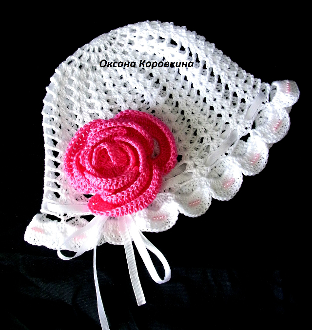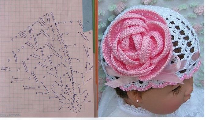 Красивые шапочки. Не подскажите из каких ниточек вязали? и нет ли у вас схемы розы, которая на первой шапочке?