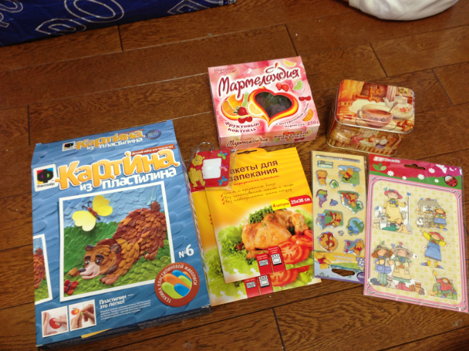 Только открыла посылку, как детки кинулись кто быстрее схватит. Ну Татеваки то сразу понял, что там для него.