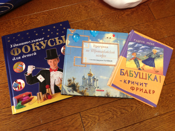 За книжку с фокусами отдельное спасибо от Лукаса. Он так обрадовался, теперь будем читать и пробовать фокусничать ))). А мне очень понравилась книжка с картинами, супер! Мужу похвасталась, там картины все сопровождаются стихами. Очень здорово, буду деток знакомить с русскими художниками. И еще одна книжечка, будем с Лу читать.