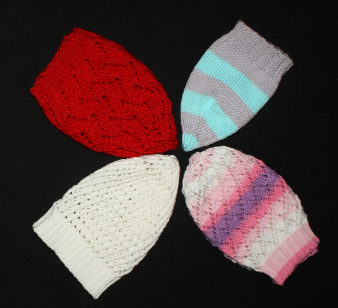 все шапочки уже успели поносить и постирать (изменений, деформаций не произошло, в процессе носки у хлопковых шапочек чуть растягивается резинка)