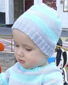 Шапочка серо-бирюзовая связана из Ализе Бахар (100% мерс. хлопок бирюз.) и Magic Микрофибра (серый), набирала 120п.на спицы №3 вязала резинкой 2х2, затем гладью на спицах 3.5, убавки делала так, разделила количество петель на 4 части (по 30п), убавляла в каждом лицевом ряду в начале и в конце каждой части, провязывая 2п вместе. Из 1 мотка микрофибры и 1 мотка хлопка получилось 2 шапки и еще остались нитки. Фото на крестнике