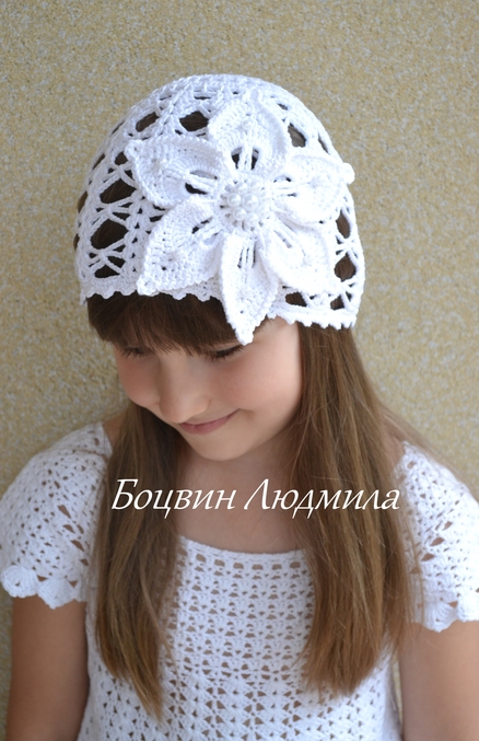 здорово!!!!!!!Очень нежно!!А цветочек просто чудо!!!!Украду я вашу шапочку в закрома,если позволите))))