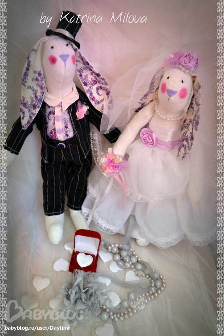наконец-то закончила я свой свадебный подарок для дорогой подружки! Делала почти 2 недели! Вот что получилось у меня, тк опыт по шитью свадебных зайчиков у меня первый, поэтому есть и косяки, и недоработки и переработки))))