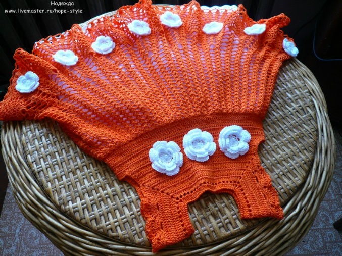 Заказала мне девочка с которой я уже работала. Была договоренность, что я ей отдаю платье 3-4 числа, поскольку они 7 числа уже улетают на отдых. Я все подрассчитала и неспеша себе вяжу, а 31 мне сообщают, что уезжают они оказывается 2. Что тут сказать, что я офигела, это еще мало сказано. понятно, что у меня впереди бессонные ночи. Одну ночь я себе еще позволила 5 часиков поспать, а вот в ночь на второе просидела, что называется до зари. Еще повезло что вылет перенесли на вечер. Договорились мы встретиться перед аэропортом. приезжаю, абсолютно никакущая в договоренное время - нет моей заказчицы. Звоню - абонент недоступен. Потопталась до крайнего срока, пробежалась по аэропорту и отправилась во свояси.